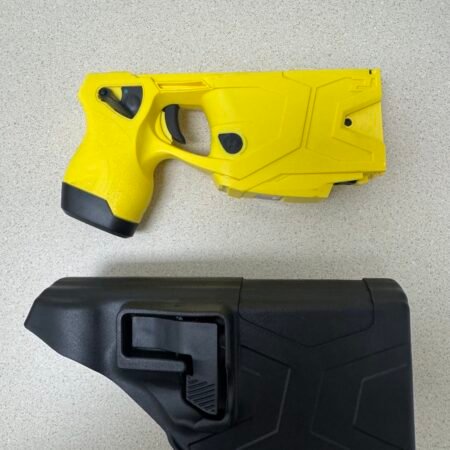 Used Taser X26 yellow with 2 holster, 4 cartridges, brand new extended battery
